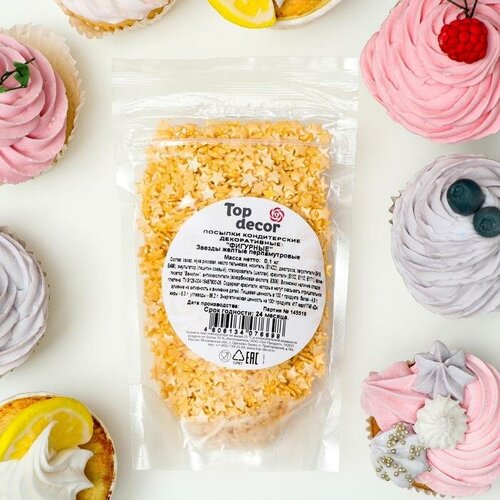 Кондитерская посыпка ТероПром 7127569 «Звёзды желтые перламутровые», 100 г