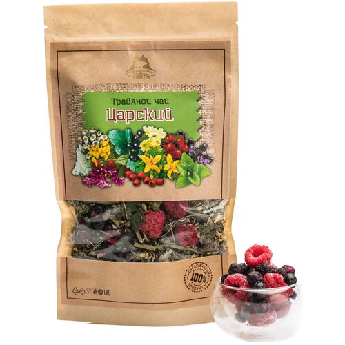 Травяной чай царский — зверобой, кипрей, курильский чай, мелисса, малина, черная смородина, шиповник, боярышник, рябина, мята, лабазник, лист земляники, малины, смородины, первоцвет, ромашка, чабрец, 50 г, Территория тайги