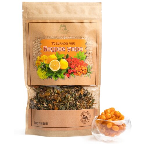 Травяной чай бодрое утро — зверобой, шиповник, курильский чай, лист облепихи, рябина, мята, цедра, облепиха, 50 г, Территория тайги