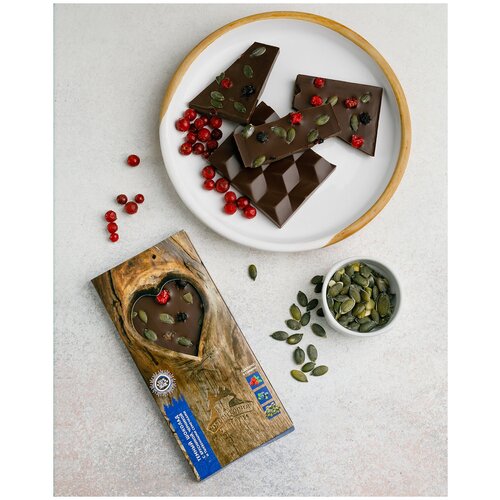 Шоколад ручной работы темный с брусникой, черникой и тыквенными семечками, 90 г, Территория тайги