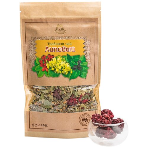 Травяной чай липовый — цветки и листья липы, лист ежевики, земляники, шиповник, мята, ежевика, 50 г, Территория тайги
