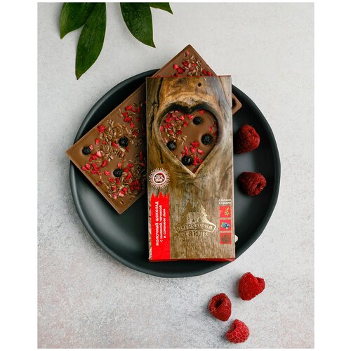 Шоколад ручной работы молочный с малиной, черникой и семенами льна, 90 г, Территория тайги