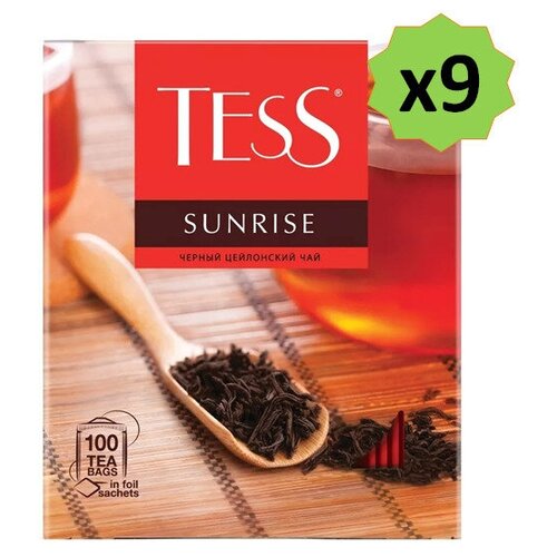 Чай черный Tess Sunrise Тесс Санрайз, 9 упаковок по 100 пакетиков