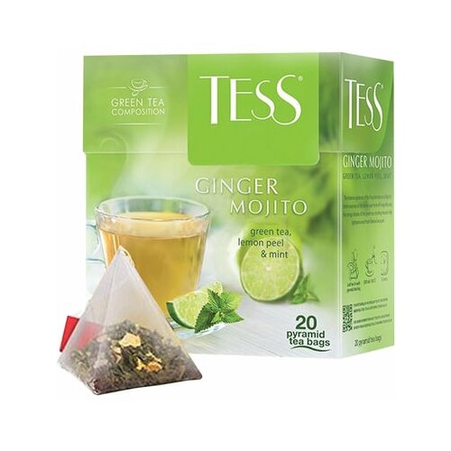 Чай TESS (Тесс) "Ginger Mojito", зеленый с ароматом мяты и лайма, 20 пирамидок по 1,8 г, 0788-12 2 уп