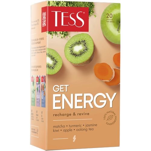 Чай TESS (Тесс) "Get Energy", зеленый с ароматом киви и жасмина, 20 пакетиков по 1,5 г, 1670-12