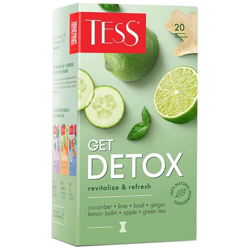 Чай TESS (Тесс) "Get Detox", зеленый с пряностями и цитрусом, 20 пакетиков по 1,5 г, 1669-12