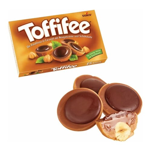 Toffifee, набор конфет в коробке с лесным орехом в карамельной чашечке, с кремовой нугой и шоколадом / Тоффифи, произведено в Германии, 125г