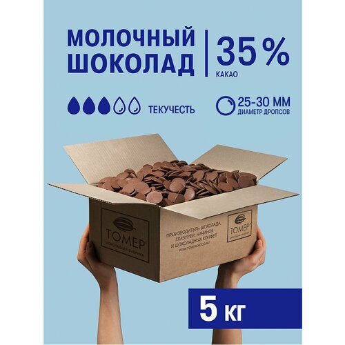 Молочный шоколад 35% 5 кг кондитерский в каллетах (каплях) для глазури, десертов, украшения тортов
