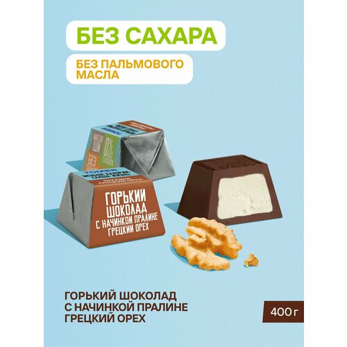 Конфеты шоколадные без сахара и пальмового масла с начинкой Грецкий орех 400 г
