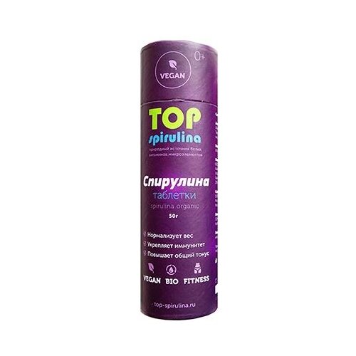 Top Spirulina Спирулина в таблетках, в тубе 200 шт, 100 г