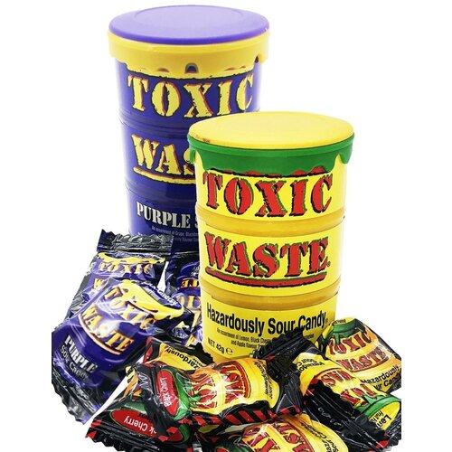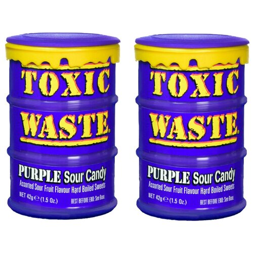 Набор из самых кислых конфет в мире Toxic Waste / два цвета: желтая и фиолетовая бочки