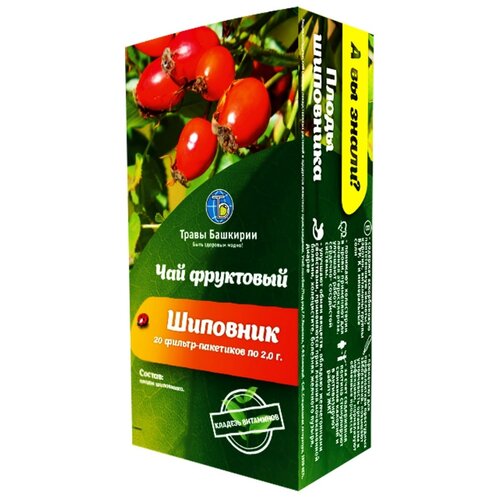 Чай фруктовый "Шиповник", Травы Башкирии, 20 фильтр пакетов по 2 гр.