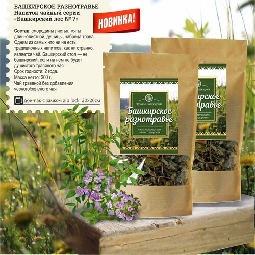 Башкирское разнотравье 200 г дой-пак (смородина,мята, душица,чабрец — купаж для добавления в чай)