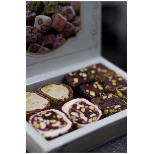 Рахат-лукум турецкий ассорти 500 гр (премиум). Гранат и фундучная пастой (голубая коробка)