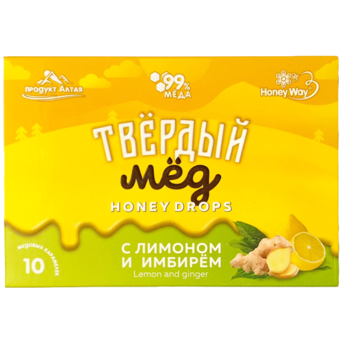 Карамель медовая твердый мёд, с лимоном и имбирем / 30г (Сила Сибири)