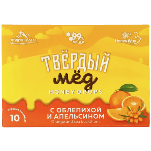 Карамель медовая твердый мёд, с облепихой и апельсином / 30г (Сила Сибири)