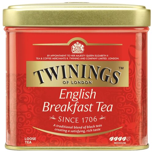 Чай Twinings "English Breakfast", черный, листовой, в металлической банке, 100 г
