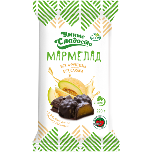 Мармелад «Умные сладости» желейно-формовой со стевией со вкусом дыни, глазированный, 220г