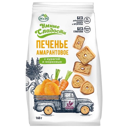 Печенье амарантовое «Умные сладости» с курагой и морковью 160г