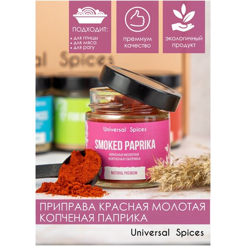 Приправа Паприка красная молотая копченая UNIVERSAL Spices, универсальная специя в баночке, 80 гр