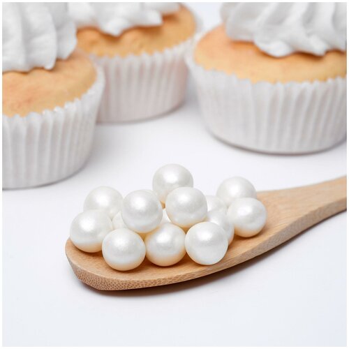 Воздушный рис в кондитерской глазури «Жемчуг», серебро, диаметр 12-13 мм, 50 г