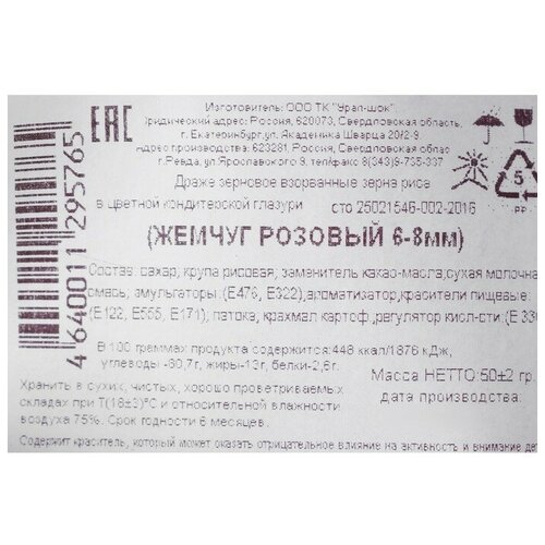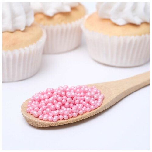 Воздушный рис в кондитерской глазури «Жемчуг», розовый, диаметр 2-5 мм, 50 г