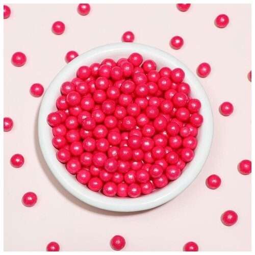 Воздушный рис в кондитерской глазури «Жемчуг», малиновый, диаметр 2-5 мм, 50 г