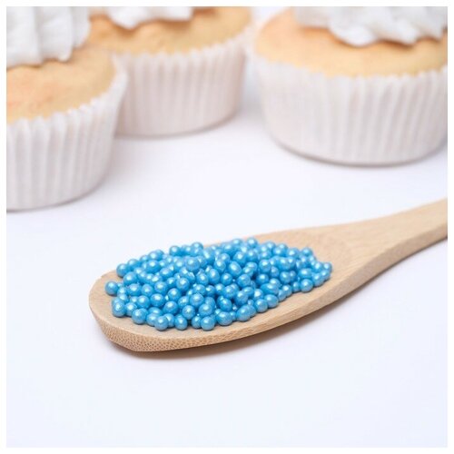 Воздушный рис в кондитерской глазури «Жемчуг», голубой, диаметр 2-5 мм, 50 г