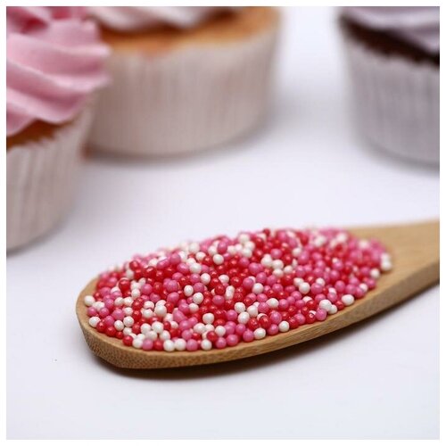 Драже сахарное «Бисер цветной» розовый, красный, серебро, 50 г
