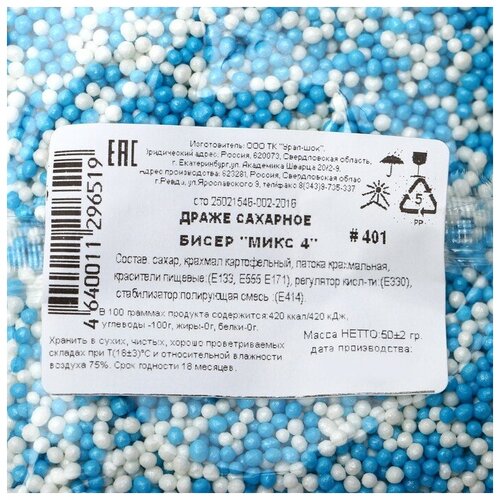 Посыпка кондитерская с мягким центром "Бисер", бело-голубой, 50 г