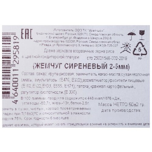 Посыпка кондитерская с мягким центром "Жемчуг" Сиреневый 2-5 мм 50г