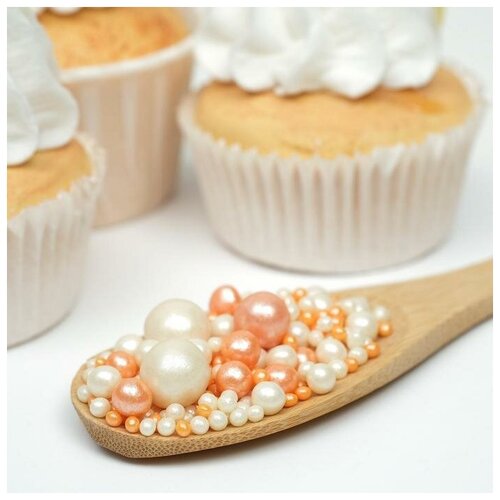 Урал-шок Драже «Жемчуг», взорванные зёрна риса в цветной кондитерской глазури, персиковый, диаметр 12-13 мм, 50 г
