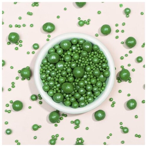 Драже «Жемчуг», взорванные зёрна риса в цветной кондитерской глазури, зелёный, 50 г