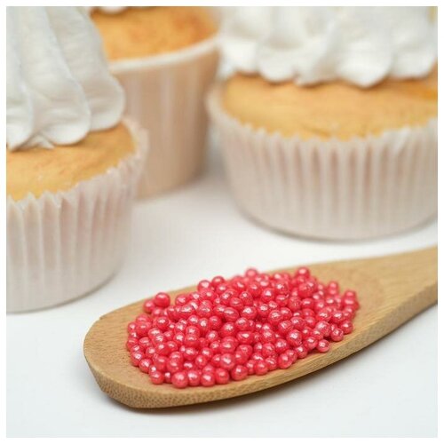 Драже «Жемчуг», взорванные зёрна риса в цветной кондитерской глазури, красный, диаметр 2-5 мм, 50 г