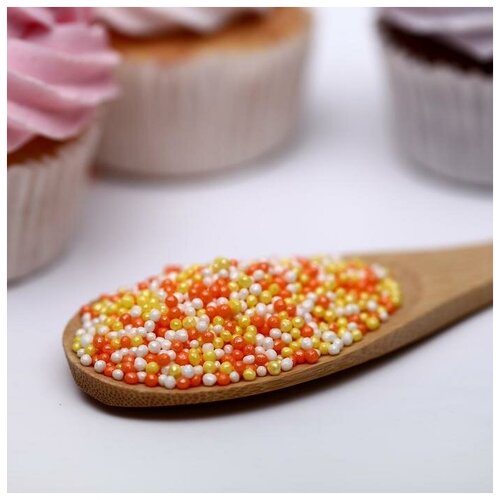 Драже сахарное «Бисер цветной» жёлтый, оранжевый, серебро, 50 г