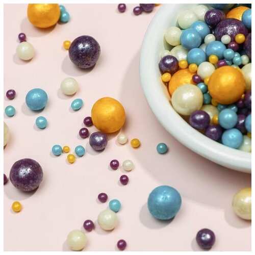 Драже зерновое в цветной кондитерской глазури Жемчуг золото, серебро, голубой, сиреневый, 50 г