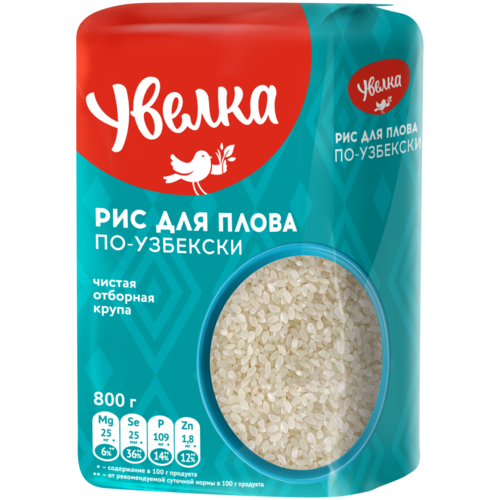 Рис Увелка для плова по-узбекски круглозерный шлифованный, 800 г