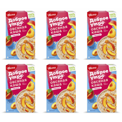 Увелка Каша овсяная Увелка быстрого приготовления с персиком, 5 пакетиков, 200 г, 6 уп