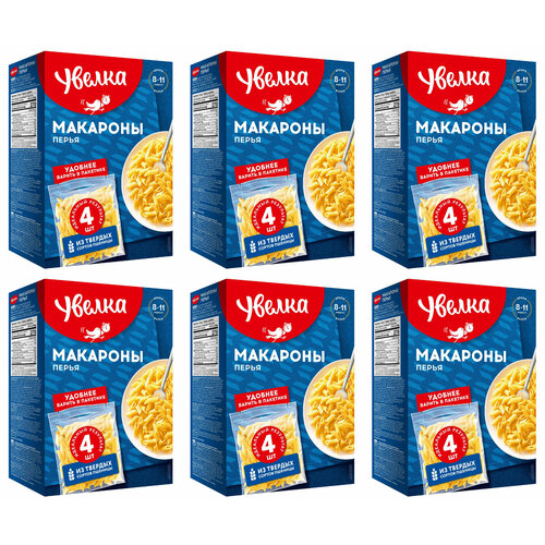 Увелка Макароны Перья, 4 пакетика, 320 г, 6 уп