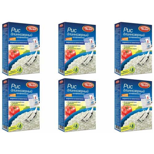 Упаковка из 6 штук Рис длиннозерный Увелка шлифованый 400г (5 х 80г)