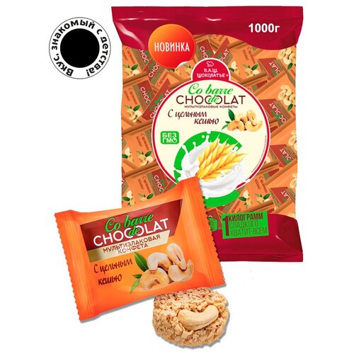 Конфеты мультизлаковые Co barre de CHOCOLAT с цельным кешью и белой кондитерской глазурью 1000гр. Вкус, знакомый с детства.