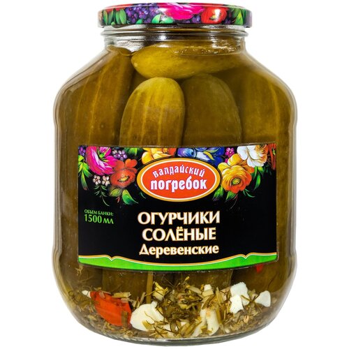 Огурцы "Деревенские" солёные с листом хрена, 1,5 л