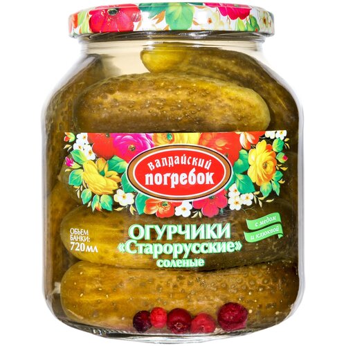 Огурчики "Старорусские" солёные с мёдом и клюквой, 720 мл