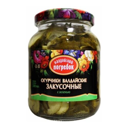 Огурчики Валдайские закусочные с зеленью, 500 мл
