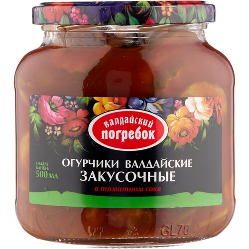 Огурчики Валдайские закусочные в томатном соке, 500 мл