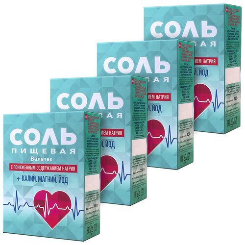 Соль Валетек пищевая с пониженным содержанием натрия + калий, магний и йод, 350г х 4шт