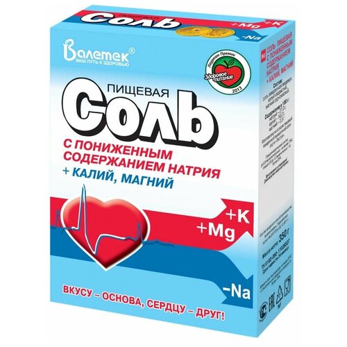 Соль пищевая Валетек с пониж. содерж. натрия + калий, магний, йод, Россия, 350 г х 2шт