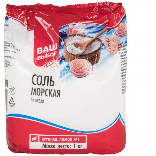 Соль морская пищевая Ваш выбор крупная помол №1, 1 кг