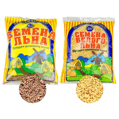 Семена льна белого и коричневого. Набор 2 пакета по 200 гр.