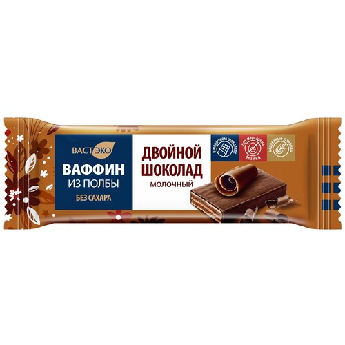 Вафли глазированные молочным шоколадом ваффин из полбы. Двойной шоколад. Без сахара, 27 гр.